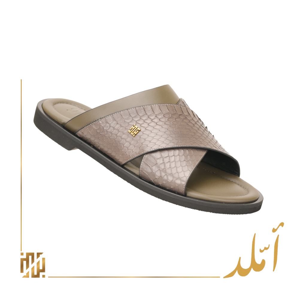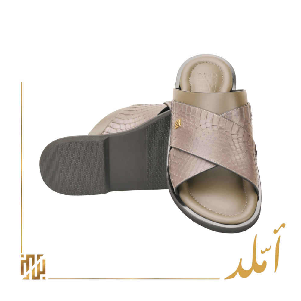 حذاء املد من جلد حية ظهر باللون الرمادي