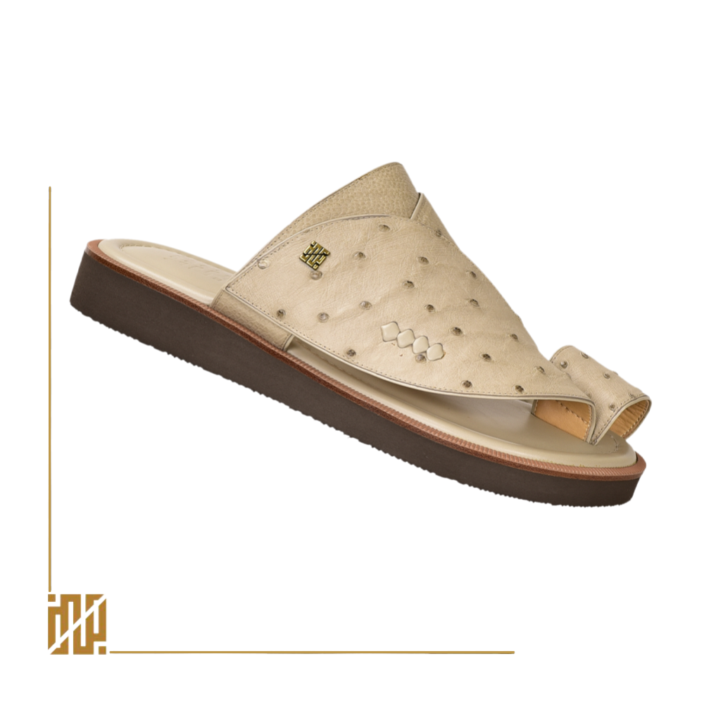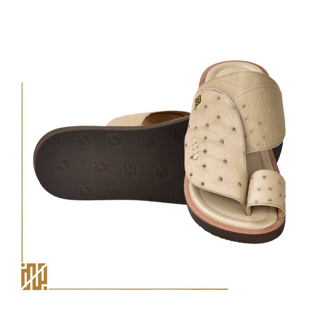 حذاء من جلد النعام باللون البيج